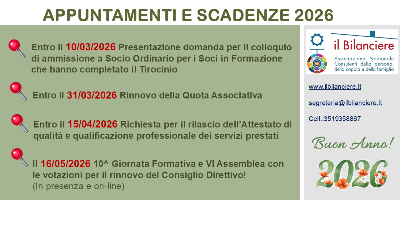 L’Associazione Nazionale Consulenti della persona, della coppia e della famiglia si propone di tutelare la professione del Consulente, valorizzare le competenze degli associati e garantire il rispetto delle regole deontologiche, agevolando la scelta e la tutela delle persone che chiedono aiuto nel rispetto delle regole sulla concorrenza.